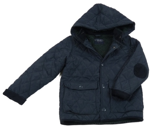 Tmavomodrá šusťáková zateplená prošívaná bunda s kapucí Next