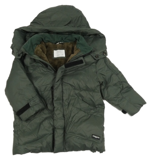 Khaki šusťákový zimní kabát s kapucí Zara