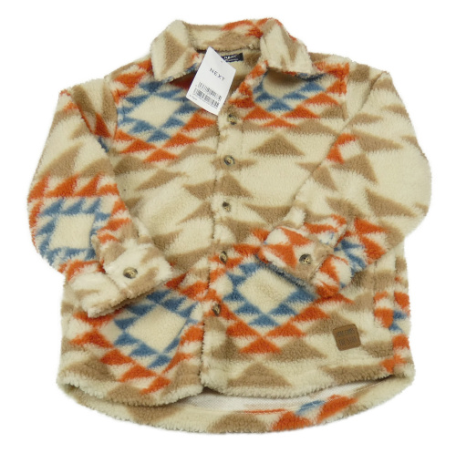 Nové - Béžovo-hnědo-oranžovo-modrá vzorovaná huňatá košilová bunda Next