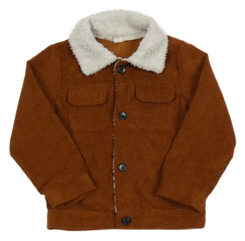 Hnědá žebrovaná sametová košilová bunda s chlupatým límcem Shein