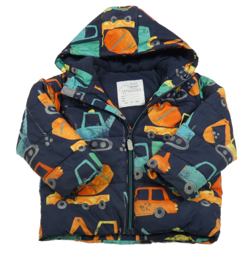 Tmavomodrá šusťáková zimní bunda se stavebními stroji a kapucí Nutmeg