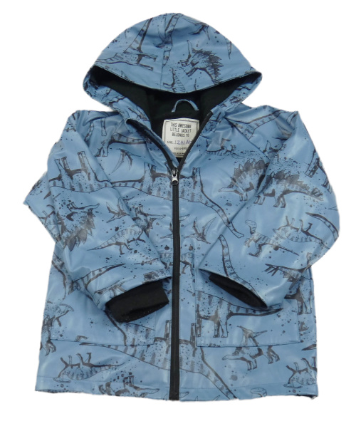 Šedomodrá nepromokavá jarní bunda s dinosaury a kapucí Matalan