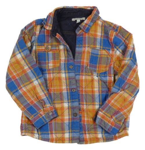 Okrovo-modro-tmavooranžovo-bílá kostkovaná zateplená košilová bunda M&S