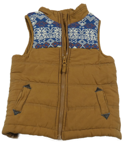 Hnědo-modrá šusťákovo/pletená zateplená vesta