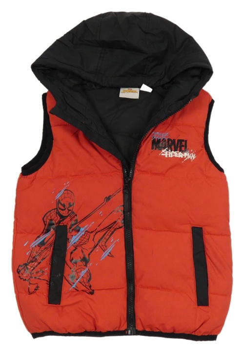 Červeno-černá šusťáková zateplená vesta se Spidermanem a kapucí Marvel