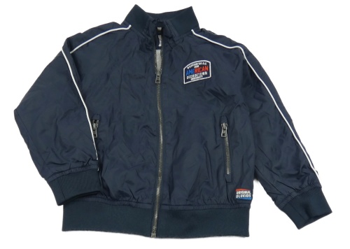 Tmavomodrý šusťákový jarní bomer s nášivkou