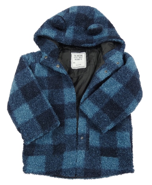 Tmavomodrá kostkovaná huňatá podšitá bunda s kapucí Matalan