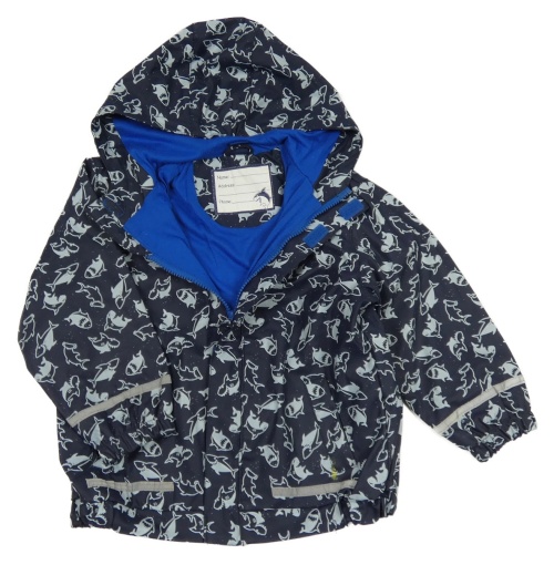 Tmavomodrá nepromokavá jarní bunda se žraloky a kapucí Kiki&Koko