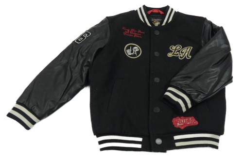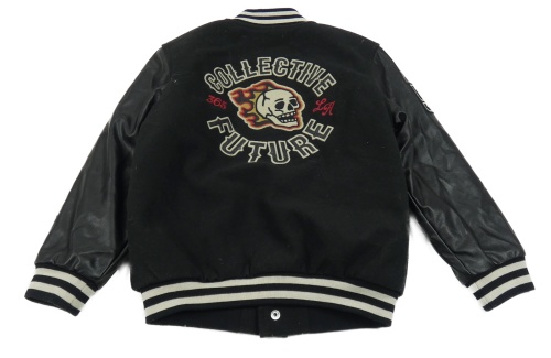Černá flaušová baseballová zateplená bunda s koženkovými rukávy a nápisem Next