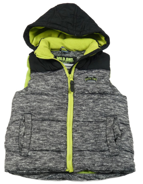 Černo-melírovaná šusťáková zateplená vesta s nášivkou a kapucí Dopodopo