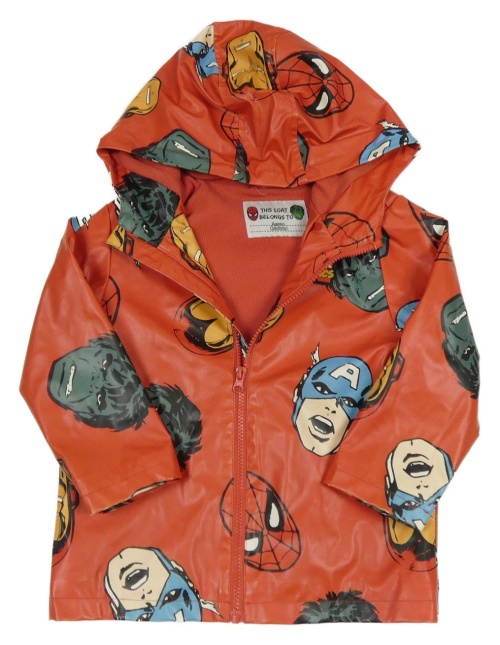 Červená voděodolná lehce zateplená bunda se superhrdiny a kapucí Marvel