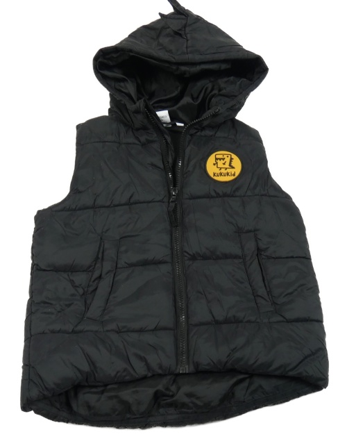 Černá šusťáková zateplená vesta s dinem a kapucí s ostny