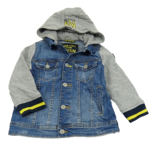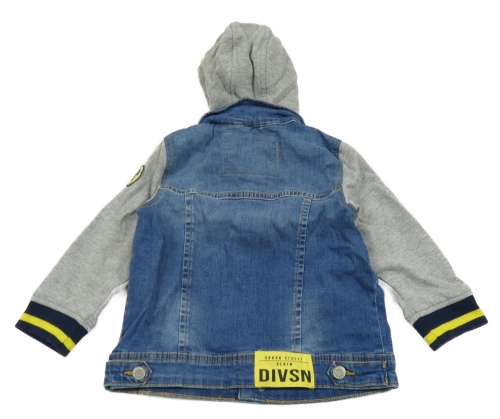 Modro-šedá riflovo/tepláková bunda ošoupaného vzhledu a nášivkou a odepínací kapucí ORIGINAL BRAND