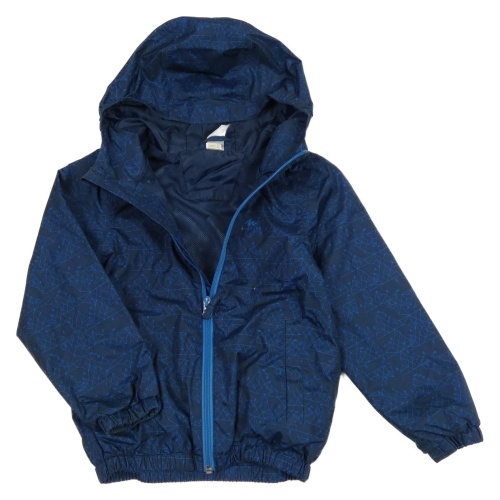 Tmavomodrá šusťáková jarní funkční bunda s horami a kapucí Quechua