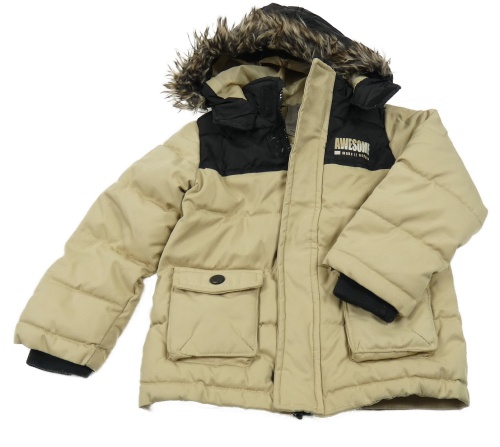 Černo-béžová šusťáková zimní bunda s nápisem a kapucí Kiki&Koko