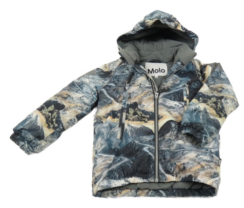 Tmavošedo-modroor-béžová vzorovaná šusťáková zateplená bunda