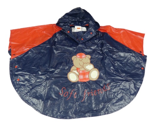 Červeno-modré pláštěnkové pončo s medvědem a kapucí