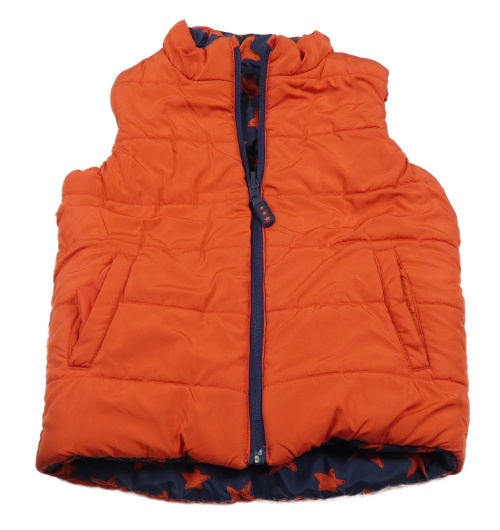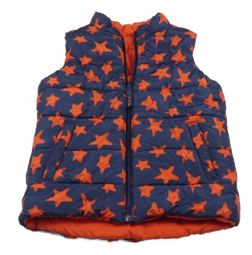 Tmavomdrá šusťáková prošívaná zateplená oboustranná vesta s hvězdičkami