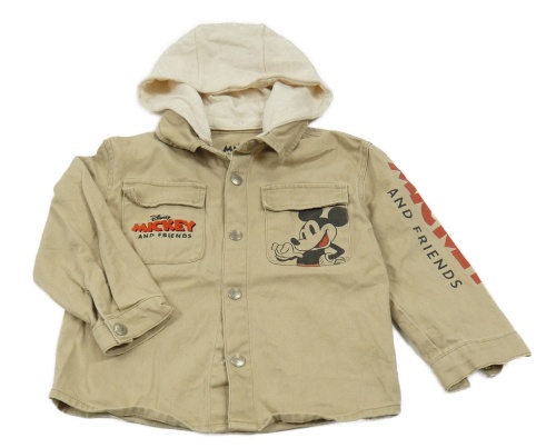 Béžová riflová bunda s Mickeym a kamarády a teplákovou kapucí Disney