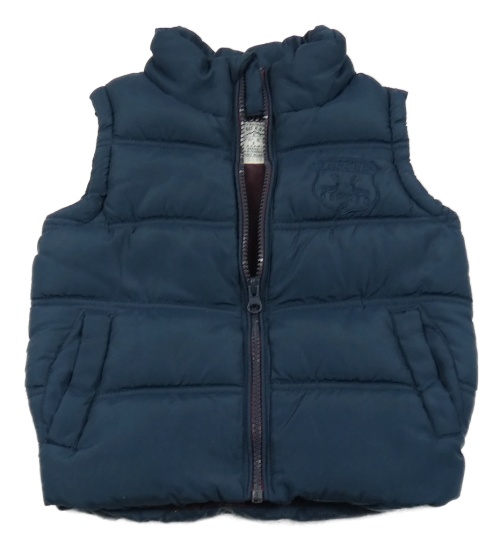 Tmavomodrá šusťáková zateplená vesta s výšivkou Rebel