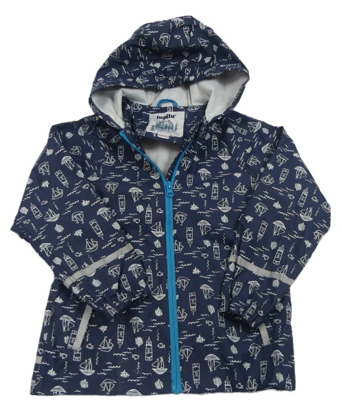 Tmavomodrá vzorovaná nepromokavá bunda s majáky a kapucí Lupilu