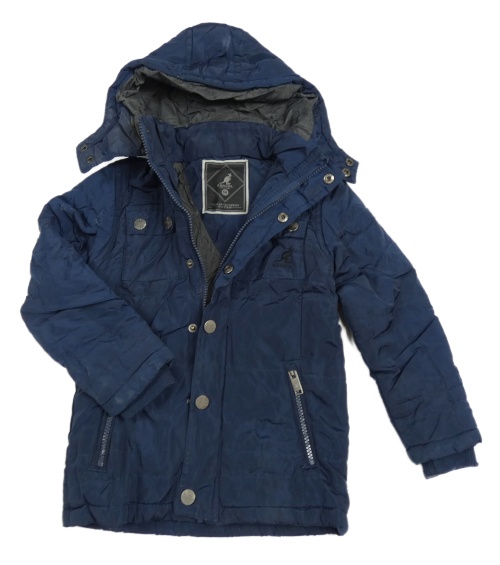 Tmavomodrá šusťáková zateplená bunda s kapucí Kangol