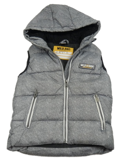 Šedá melírovaná šusťáková zateplená vesta s nášivkou a kapucí Dopodopo
