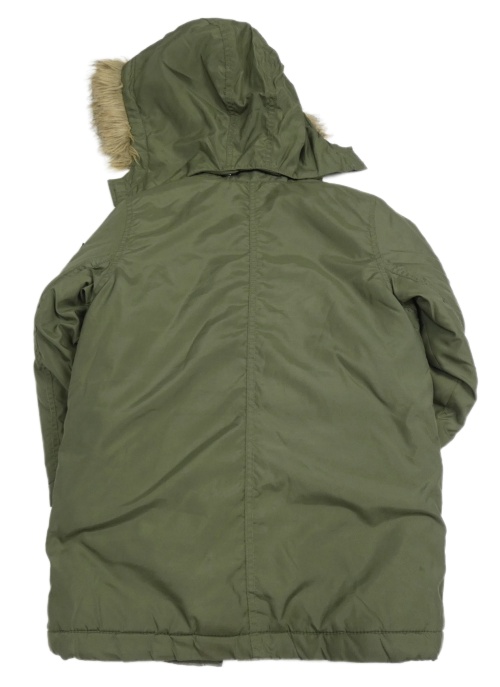 Khaki šusťákový zimní kabát s odepínací kapucí s kožešinou H&M