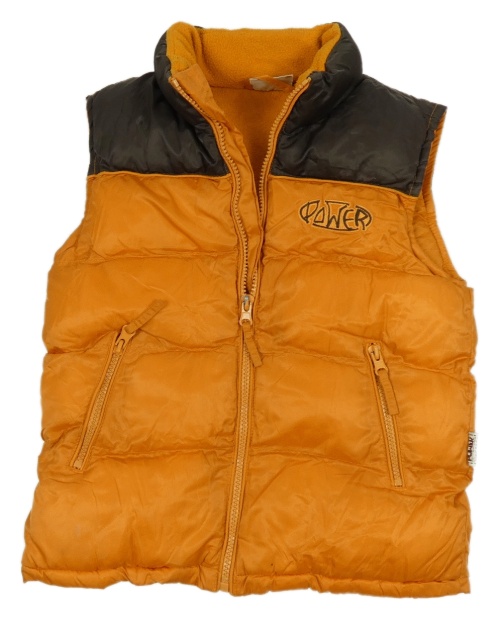 Oranžovo-hnědá šusťáková prošívaná zateplená vesta s nápisem