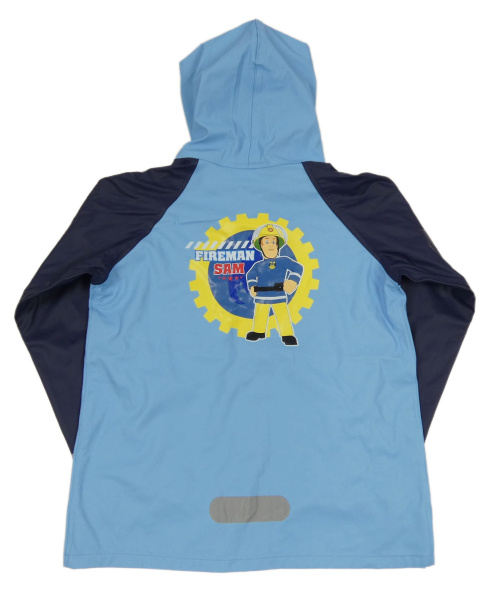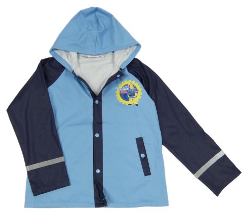 Modro-tmavomodrá nepromokavá bunda s požárníkem Samem a kapucí