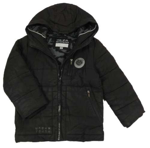 Černá kostkovaná šusťáková zimní bunda s nášivkou a kapucí F&F