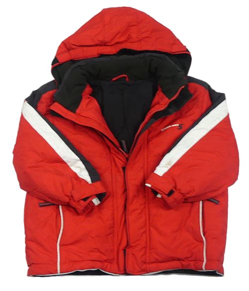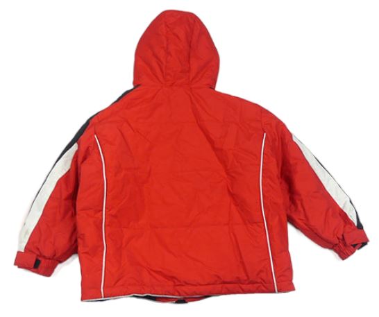 Červeno-černo-bílá šusťáková zimní bunda s nápisem a kapucí LEMMI