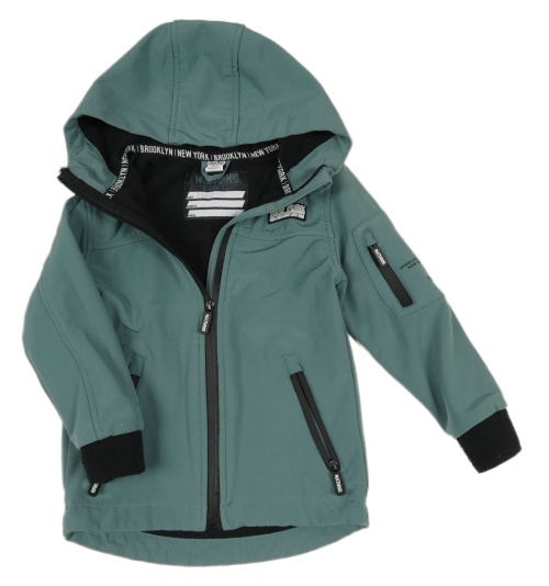 Šalvějovo-černá softshellová bunda s nášivkou a kapucí dopodopo