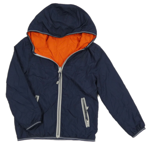 Oranžovo-tmavomodrá šusťáková oboustranná podzimní bunda s kapucí M&S