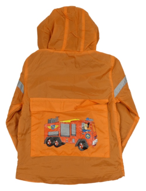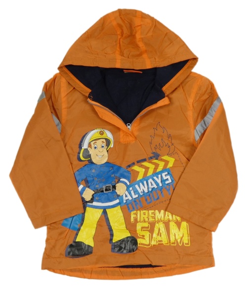 Oranžová šusťáková podzimní bunda s Hasičem Samem a kapucí