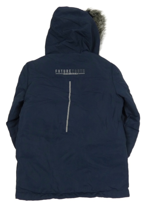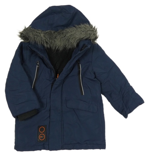 Tmavomodrý šusťákový zimní kabát s nášivkou a kapucí F&F