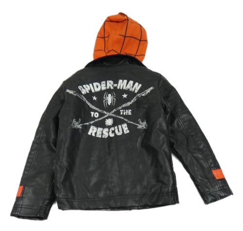 Černo-červený koženkový zateplený křivák s pavouky a kapucí - Spider-man Disney