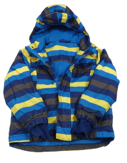 Tmavomodro-žlutá pruhovaná šusťáková zimní funkční bunda s kapucí Lupilu