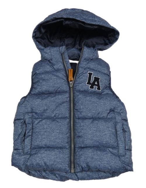 Tmavomodrá melírovaná zateplená šusťáková vesta s písmenem a kapucí H&M