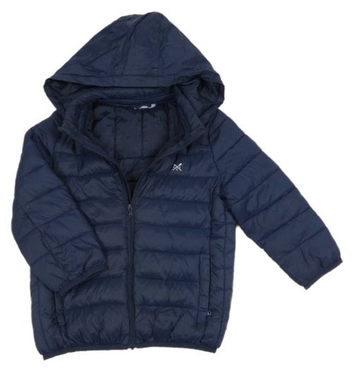 Tmavomodrá šusťáková zateplená bunda s kapucí