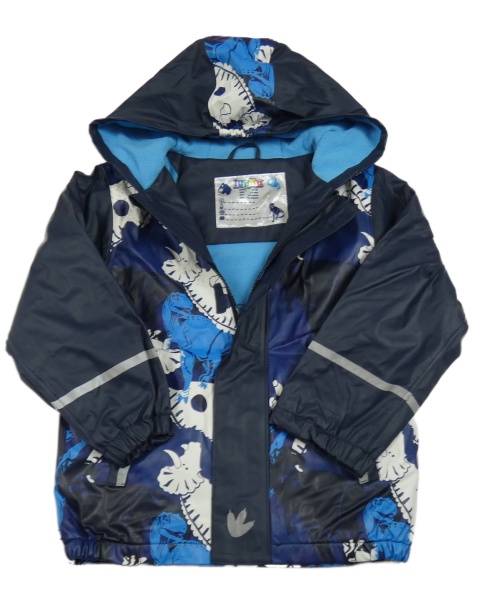Tmavomodro-modrá nepromokavá jarní bunda s dinosaury a kapucí Lupilu