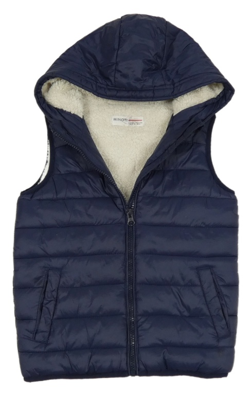 Tmavomodrá prošívaná šusťáková zateplená vesta s kapucí MINOTI