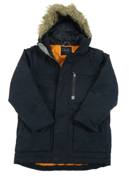Tmavomodrý šusťákový zimní kabát s kapucí Next