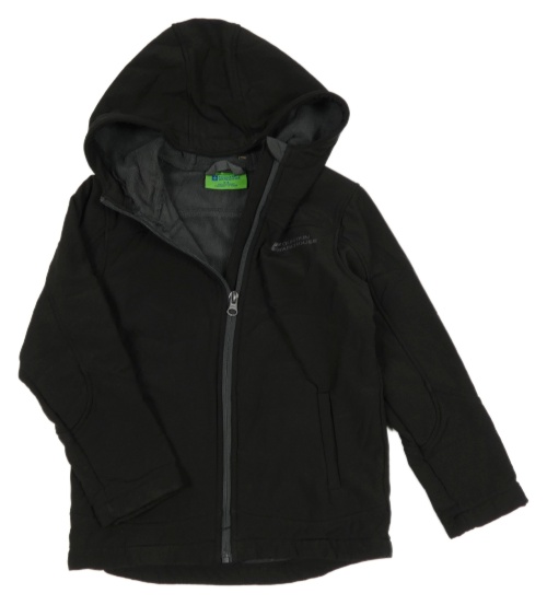 Černá softshellová bunda s logem a kapucí Mountain Warehouse