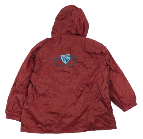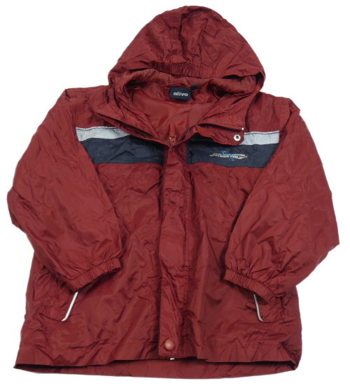 Vínovo-tmavomodrá šusťáková jarní bunda s nápisy a kapucí Alive