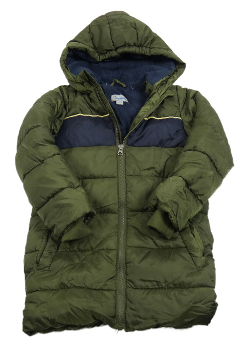 Khaki-tmavomodrý šusťákový zimní kabát s kapucí Impidimpi