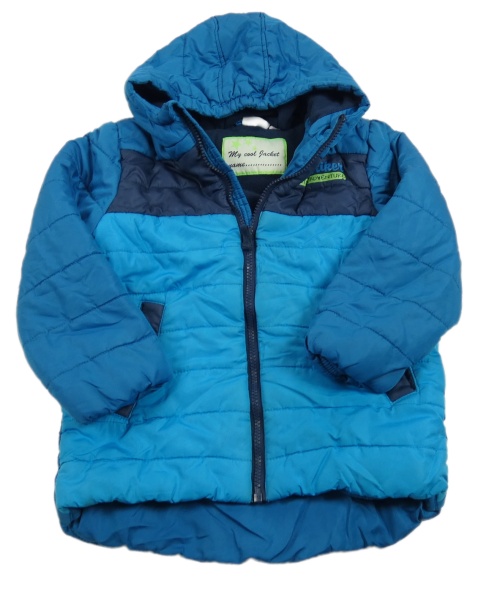 Tyrkysovo-petrolejová šusťáková prošívaná zimní bunda s kapucí Kids