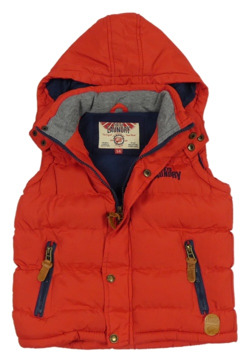Červená prošívaná šusťáková zateplená vesta s logem a kapucí TOKYO LAUNDRY