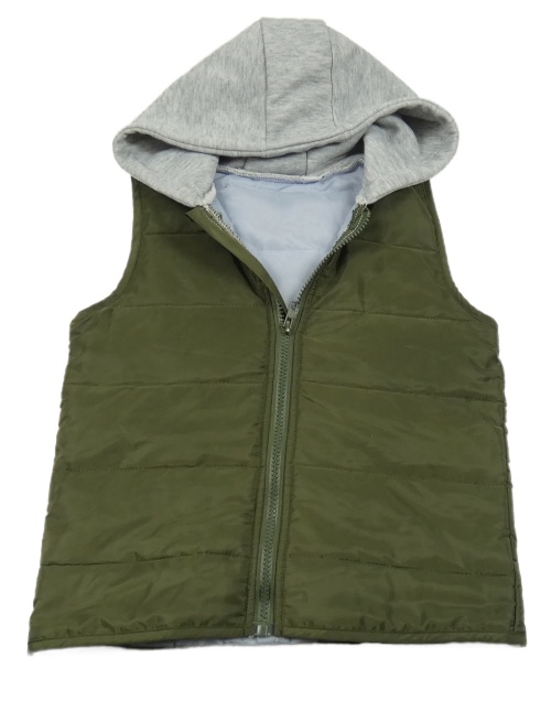 Khaki šusťáková zateplená vesta s teplákovou kapucí Shein