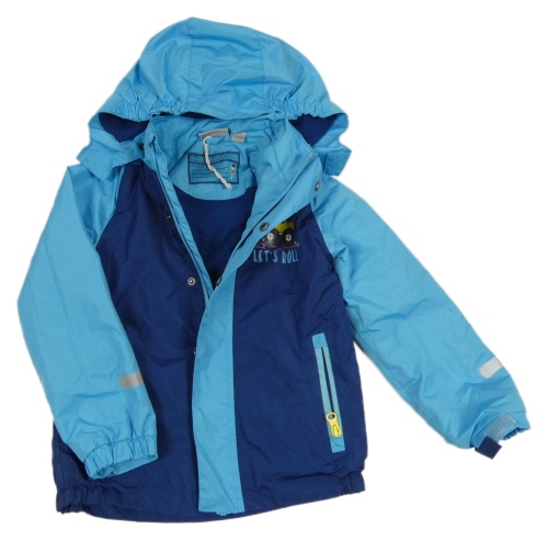Tmavomodro-modrá šusťáková jarní bunda s monster truckem a kapucí Impidimpi